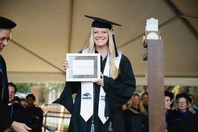 “Receiving the Graduate Leadership Award affirmed that the work I was doing by balancing leadership, service, athletics, and graduate study mattered. It wasn’t just recognition; it was encouragement to keep showing up, leading with purpose, and giving back to the Longwood community that shaped me.”