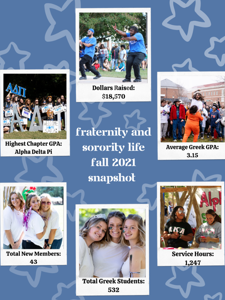 The Office of Fraternity and Sorority Life is excited to reveal the Fall 2021 Community Snapshot. Our Greek community came together this Fall to accomplish various great events!